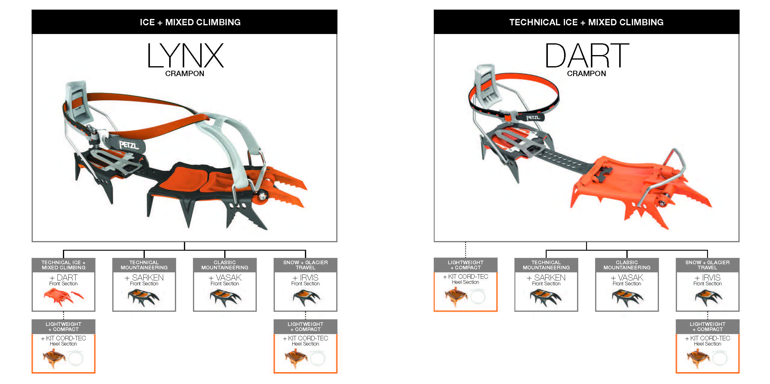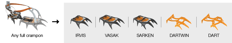 The dart front sections are adaptable to all petzl crampon models.