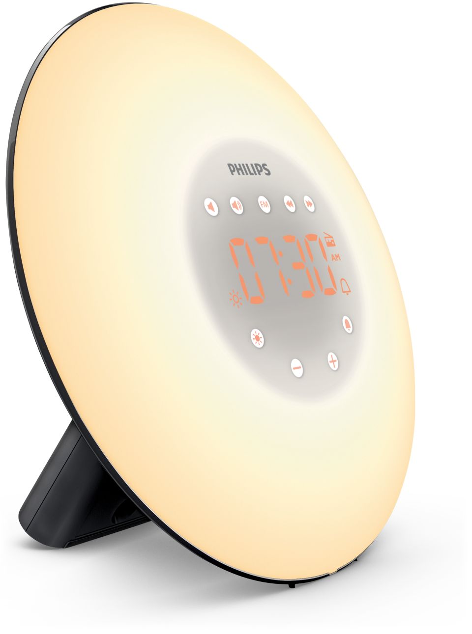 Inspired by nature s sunrise the philips wake up light uses a unique combination of light and sound to wake you in a more natural way so you feel more refreshed.