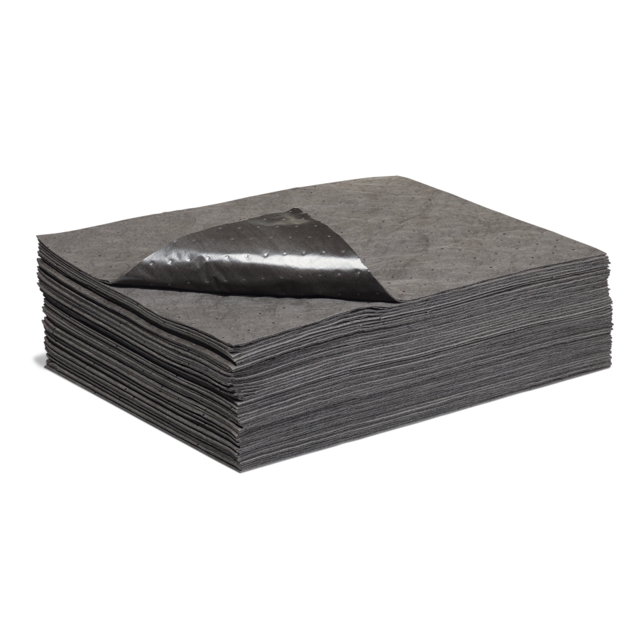 New pig heavy weight oil only absorbent mat pad in dispenser box lasts 2x longer for fewer change outs while only absorbing oil and fuels not water.