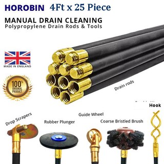 We stock universal drain rods supplied in packs of 10 lock fast drain rods and we offer a drain rod set in a case which comes with a worm screw plunger and scraper.