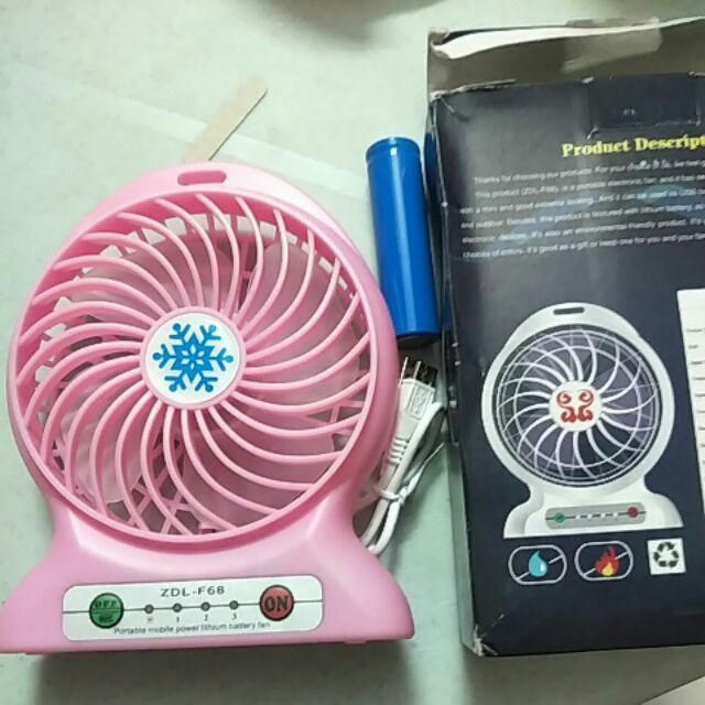 Usb portable mini lithium battery electric fan with output usb as charger and led flashlight zdl f68 duration.